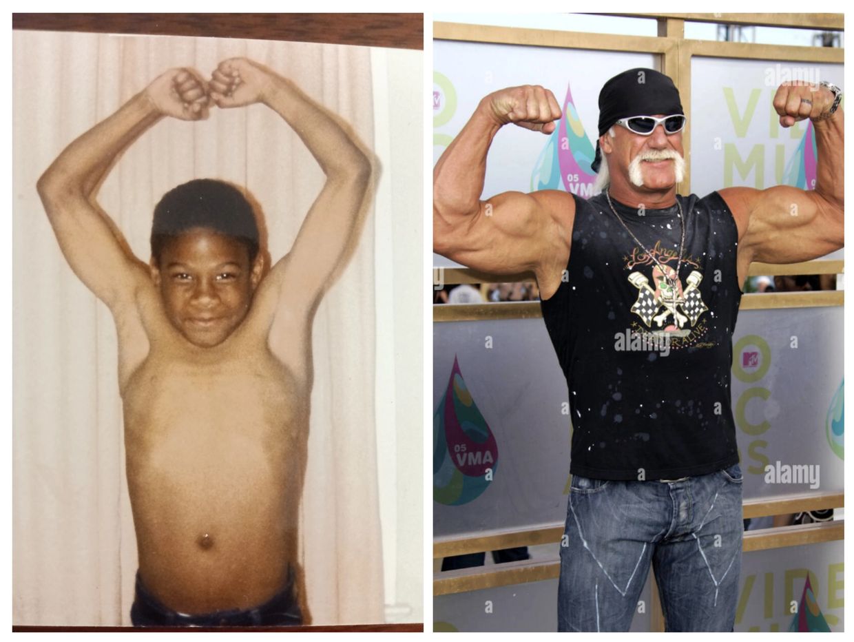 The year was 86 we was staying in southwest Detroit on Toledo street, I had just got done watching wrestling and by me being the only child wanted to try some new moves on mom dukes, she made me a deal if I pose like my favorite wrestler she all game. I turned into Hulk Hogan real quick and had her stomach hurting she laughed so hard.....but really the joke was on me, not only did she take the picture but she threw big shade with her remarks on the back of the picture!! I'm glad I did put her a@$ in the figure four leg lock!!! Wrestling was definitely my outlet from staying out of trouble and Hulk Hogan was my dude. When he came to the D I was at every match, I had beef with King Kong Bundy for putting him in the hospital, but it didn't last once my uncle Finny crushed my soul telling me "man that sh*t ain't real" from that point on I never watched wrestling again.